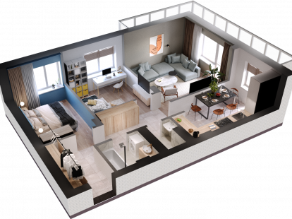 Что входит: Полный демонтаж (при необходимости), замена всей электропроводки и труб, стяжка пола, штукатурка стен по маякам, монтаж натяжных потолков, укладка качественного керамогранита или влагостойкого ламината, установка сплит-систем, монтаж кухонного гарнитура.